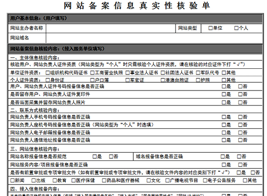 网站真实性核验单
